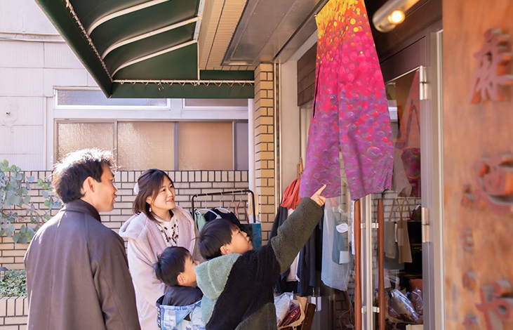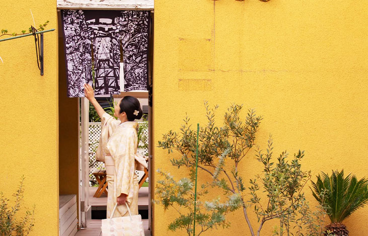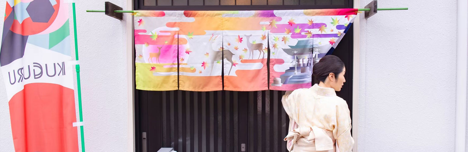 KUGURU展はのれんを「クグル」という行為から生まれた展覧会です。街、ストリートの商店や医院、会社などの軒先にアーティストたちが手がけたのれんをかかげます。街自体がギャラリーのようになり、さまざまなアートを読み解くことによってその街を知り、知り得なかった魅力を再度発見し、街の文化的価値を高めます。